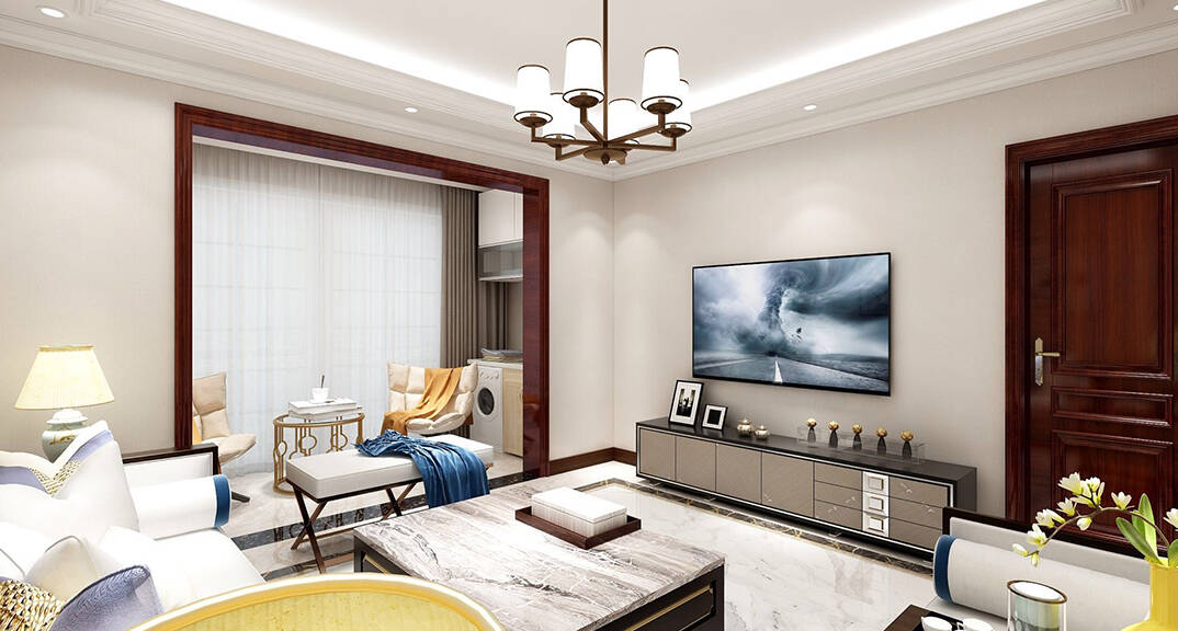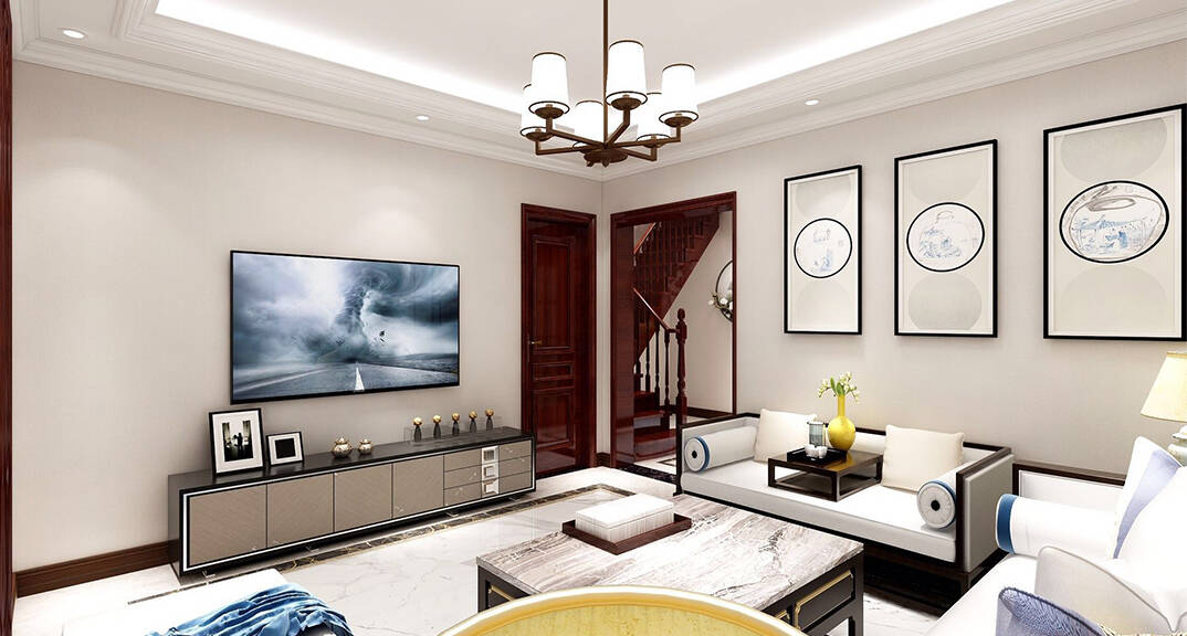 泰和郡210m2新中式風(fēng)格-客廳效果圖