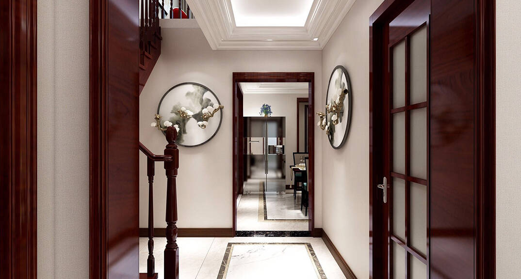 泰和郡210m2新中式風(fēng)格-連廊效果圖
