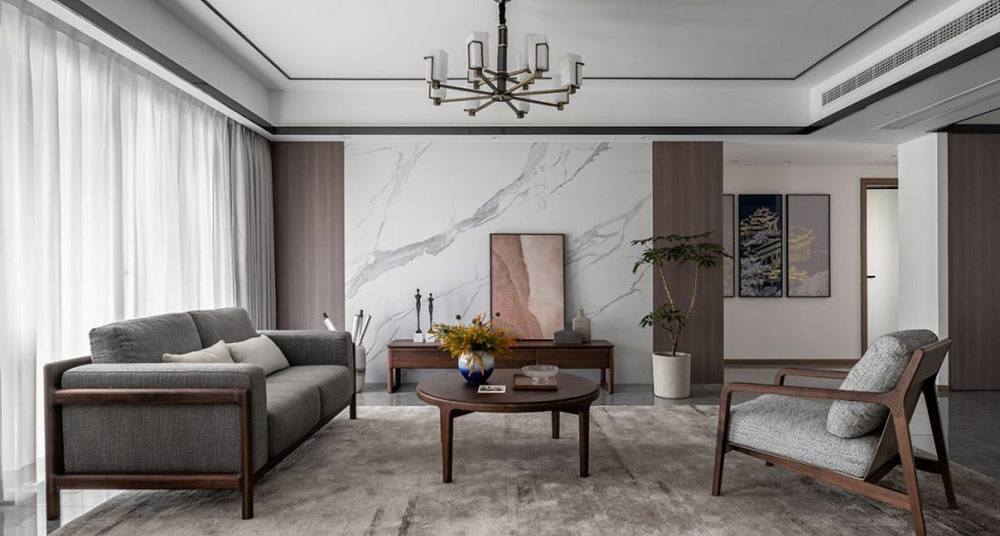 新中式風格非常講究空間的層次感,在需要隔絕視線的地方,則使用中式的屏風或窗欞、中式木門、工藝隔斷、簡約化的中式"博古架",通過這種新的分隔方式,單元式住宅就展現(xiàn)出中式家居的層次之美。再以一些簡約的造型為基礎,添加了中式元素,使整體空間感覺更加豐富,大而不空、厚而不重,有格調又不顯壓抑。
