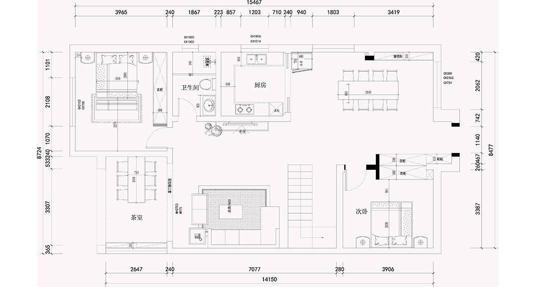 楓林小鎮(zhèn)160㎡聯排別墅新中式風格裝修案例效果圖