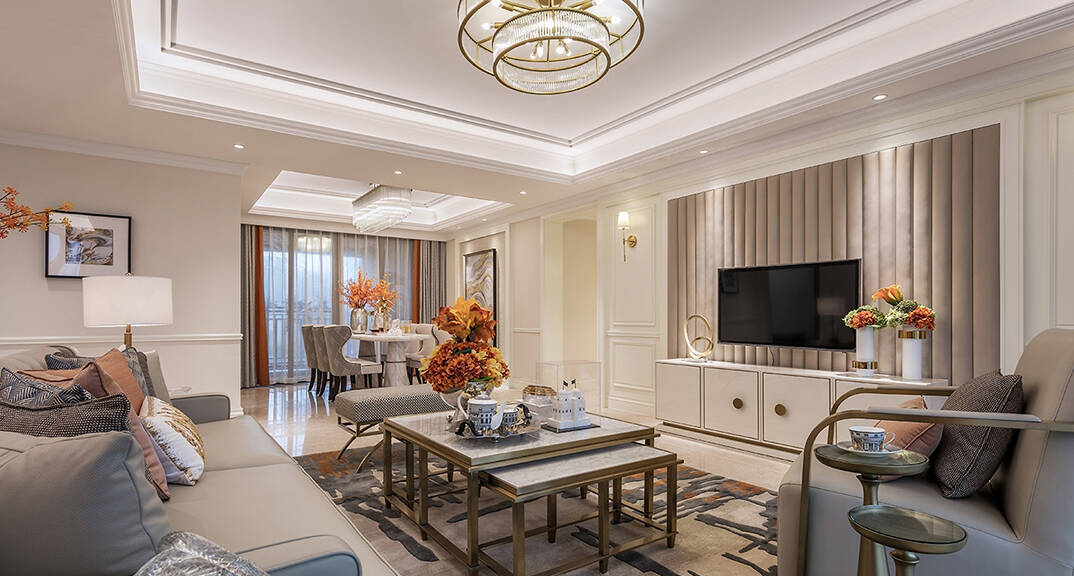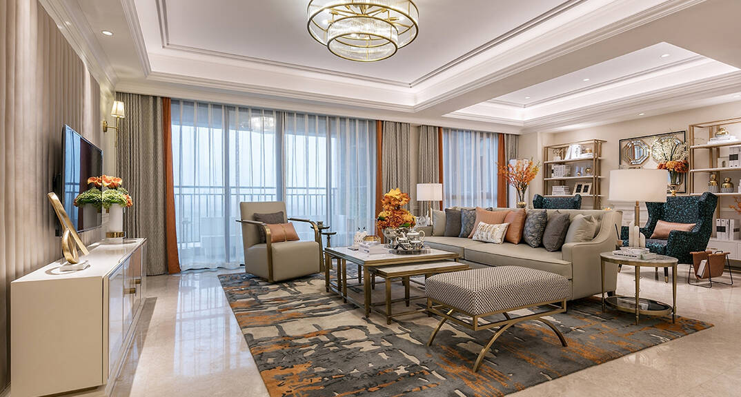 保利漫月山210m2美式風格-客廳效果圖