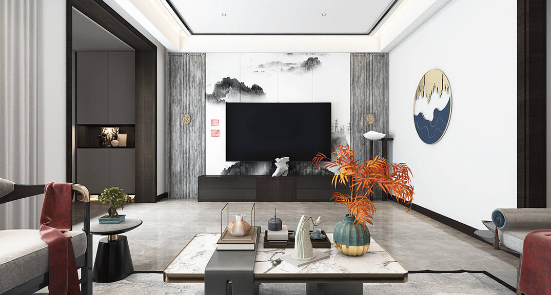 一幅水墨畫為基調(diào)的電視背景墻,映現(xiàn)自然景物與東方文化、審美的固有聯(lián)系,為空間賦予清新雅致的妝容;開門見山的呈現(xiàn)形式,更符合現(xiàn)代人的表達主張,融合中式文化精粹,演繹新東方主義家居設(shè)計的特色。