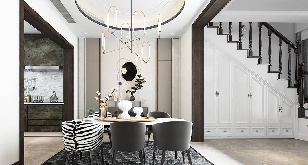 新中式風(fēng)格的餐廳巧妙的融合古典元素與現(xiàn)代元素,不僅滿足了現(xiàn)代人對古典的追求,還緊跟現(xiàn)代潮流的步伐,去除繁復(fù)的裝飾,于細節(jié)處下筆,設(shè)計風(fēng)格莊重而內(nèi)斂,給人溫馨、明亮、潔凈的視覺感受。