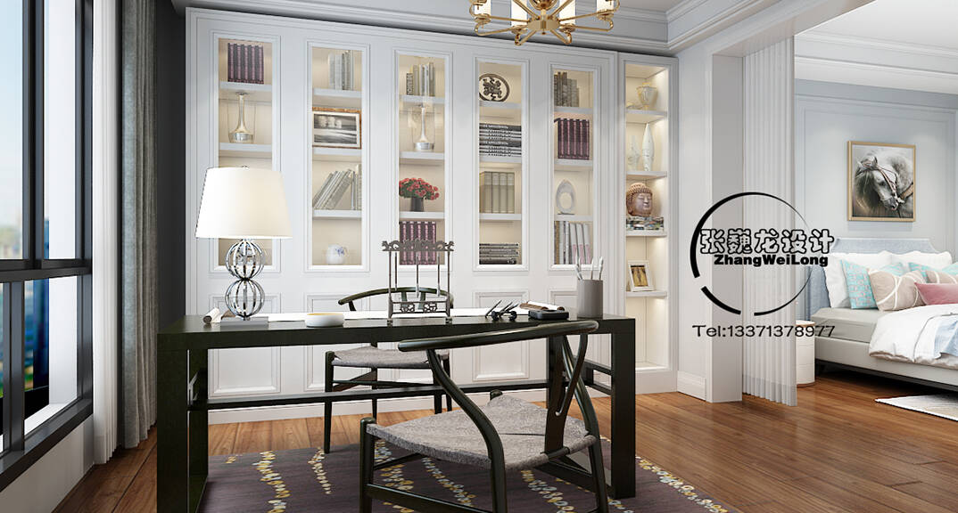 安納溪230m2輕奢風(fēng)格-書房效果圖