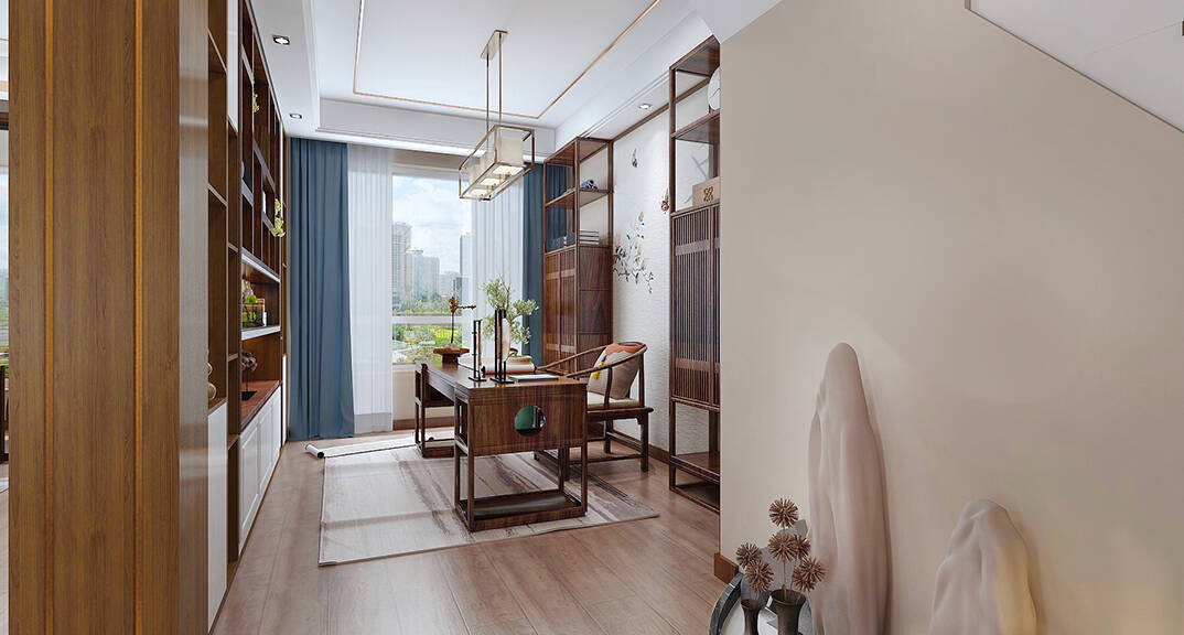 直線裝飾在空間中的使用,不僅反映出現(xiàn)代人追求簡(jiǎn)單生活的居住要求,更迎合了中式家具追求內(nèi)斂、質(zhì)樸的設(shè)計(jì)風(fēng)格,使"新中式"更加實(shí)用、更富現(xiàn)代感。