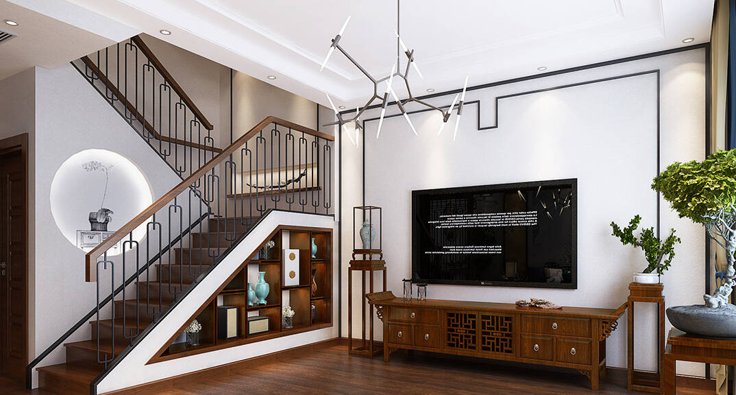 天成小區(qū)280㎡別墅客廳新中式風(fēng)格裝修案例效果圖