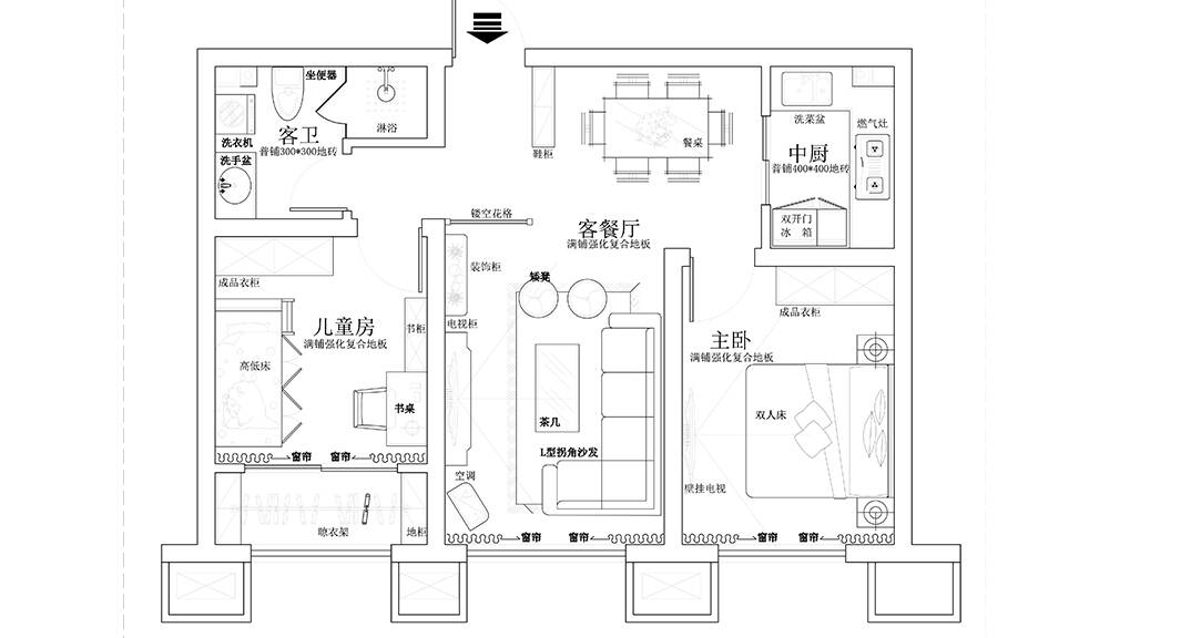 以簡潔、清晰和功能性為特征的室內(nèi)設(shè)計(jì);它主要強(qiáng)調(diào)了空間的簡化和精煉,追求線條簡單、空間通透、色彩明亮、材質(zhì)自然等特點(diǎn),注重形式與功能的結(jié)合。他們希望有一個(gè)時(shí)尚、現(xiàn)代的功能性空間,在整個(gè)空間的設(shè)計(jì)上用了暖灰調(diào)來與簡約的線條感來相呼應(yīng),能改造出一個(gè)通透、流暢的空間感。