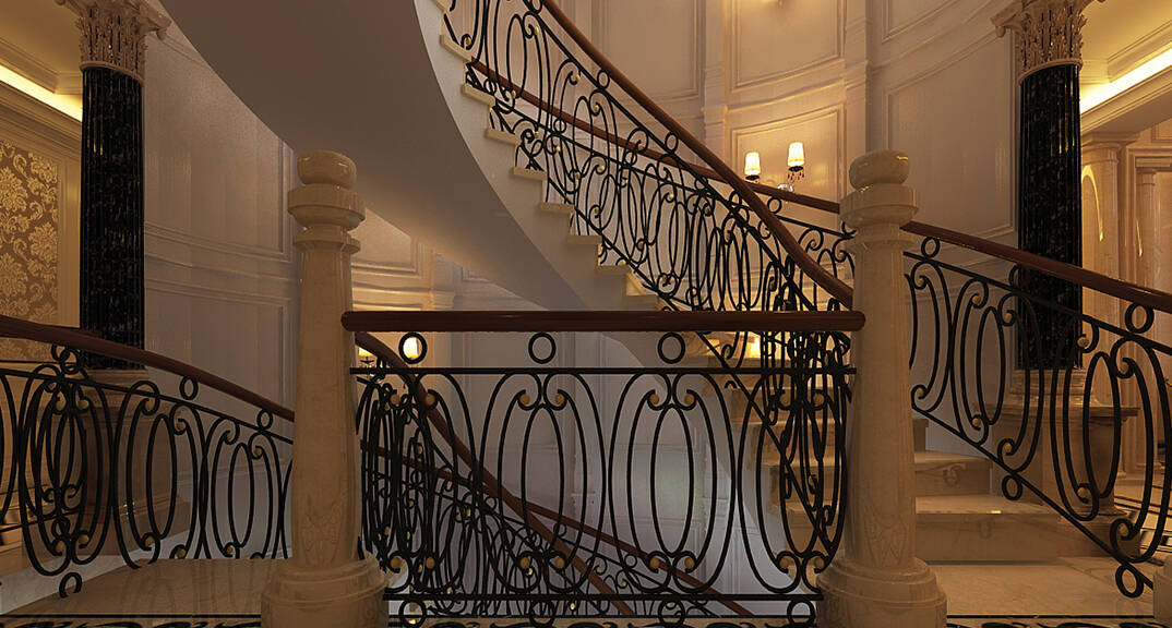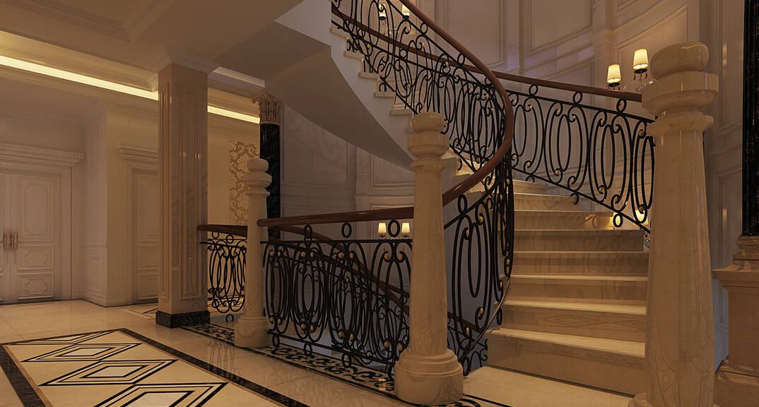 麥島金岸2000㎡別墅一樓樓梯間簡(jiǎn)歐風(fēng)格裝修案例效果圖