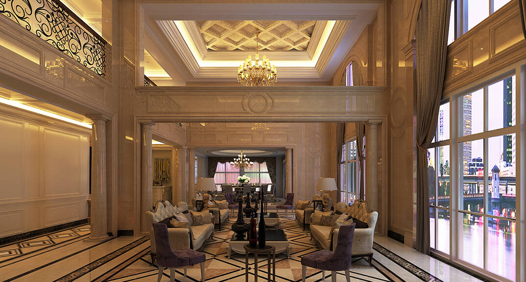 麥島金岸2000㎡別墅歐式風(fēng)格裝修案例