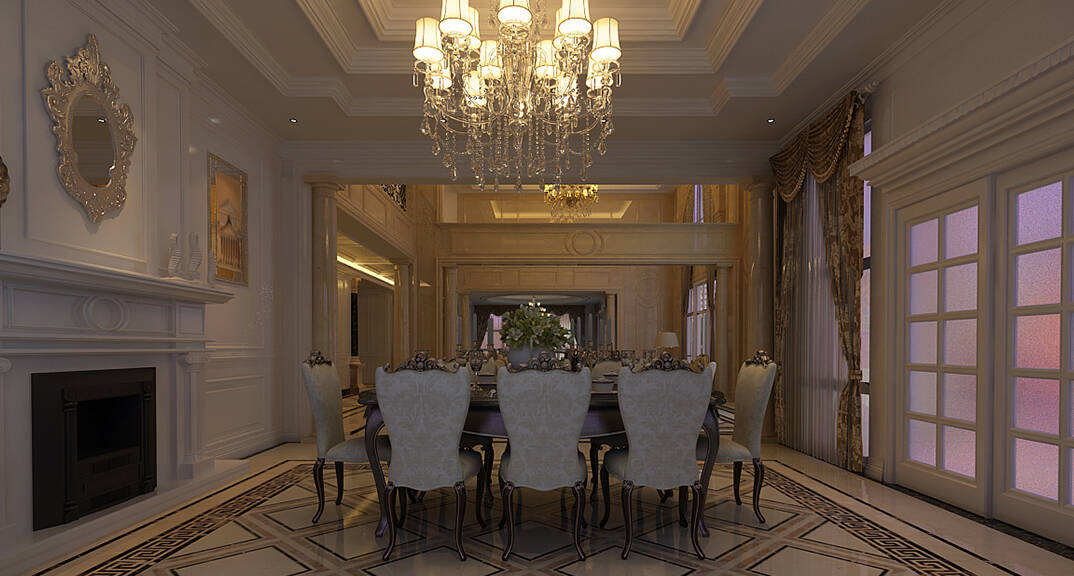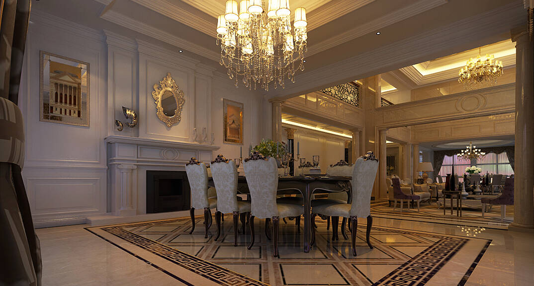 麥島金岸2000㎡別墅一樓餐廳簡(jiǎn)歐風(fēng)格裝修案例效果圖