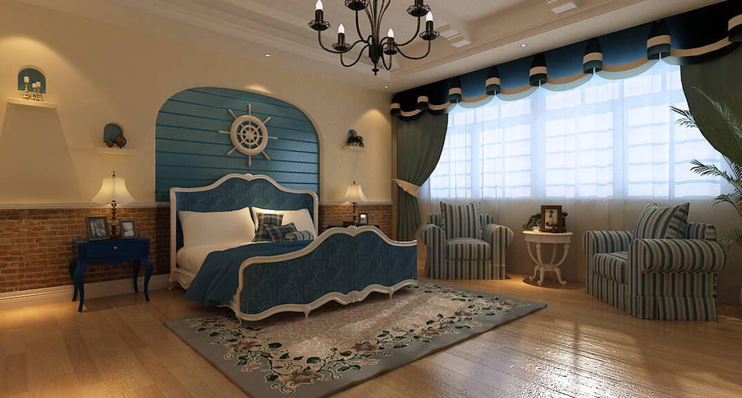 麥島金岸2000㎡別墅二樓臥室簡(jiǎn)歐風(fēng)格裝修案例效果圖