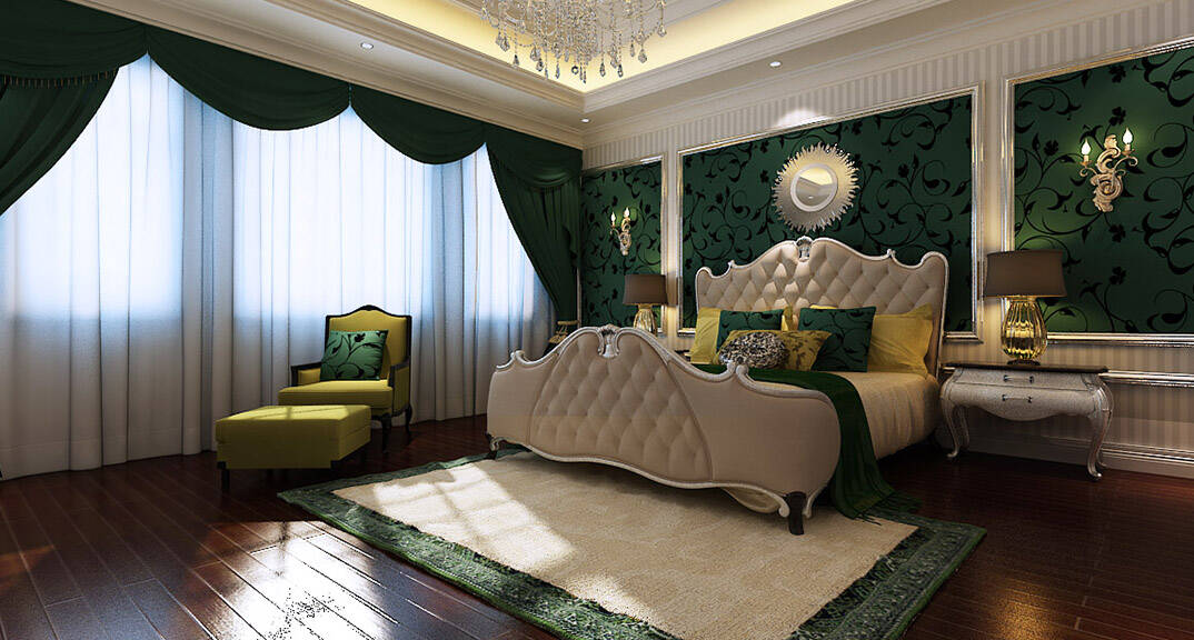 麥島金岸2000㎡別墅三樓臥室簡(jiǎn)歐風(fēng)格裝修案例效果圖
