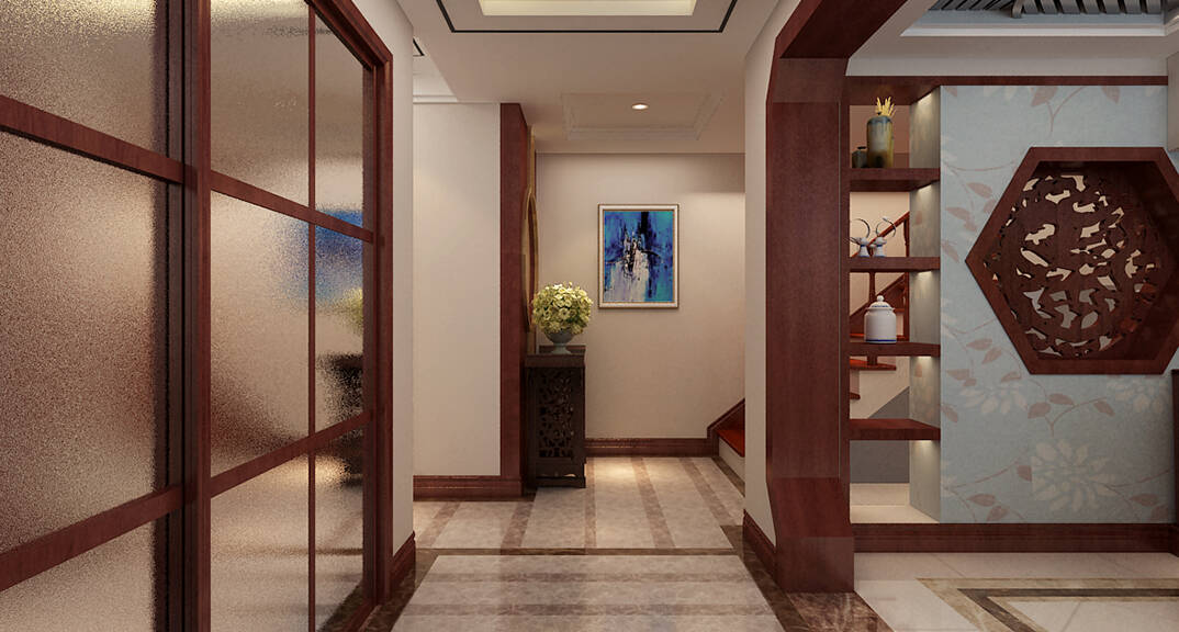 百通·香溪庭院180㎡別墅玄關(guān)中式風(fēng)格裝修案例效果圖
