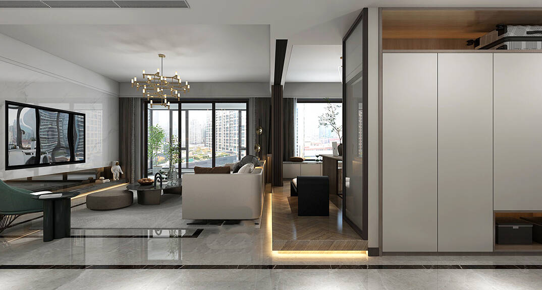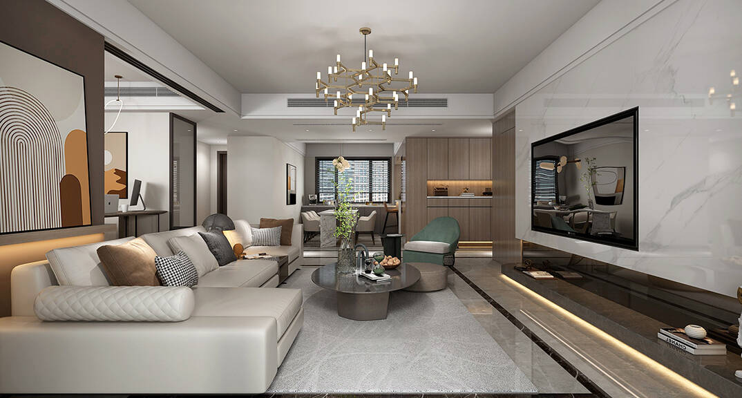 影都壹號127㎡三室兩廳意式輕奢風(fēng)格裝修案例效果圖
