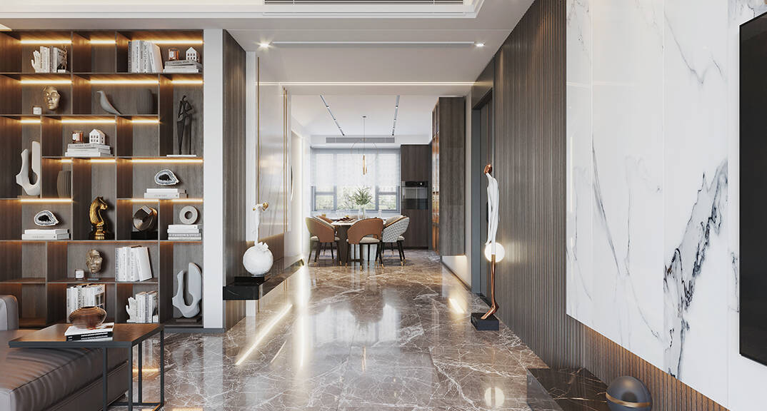 日鋼綠城·理想之城217㎡三室兩廳過(guò)道走廊現(xiàn)代輕奢風(fēng)格裝修案例效果圖
