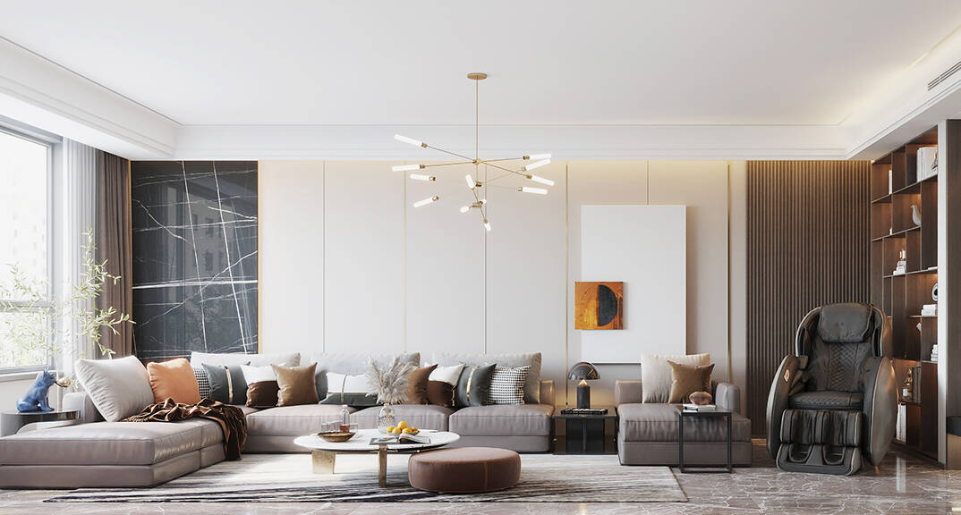輕奢,實(shí)際上是以極致簡(jiǎn)約風(fēng)格為基礎(chǔ),通過(guò)一些精致的軟裝元素來(lái)凸顯質(zhì)感,同時(shí)也濃縮著意想不到的功能與細(xì)節(jié),從而彰顯了一種高品質(zhì)的生活方式。色彩是定位風(fēng)格的重要因素,想要打造出輕奢的感覺(jué),必然要經(jīng)過(guò)巧妙的色彩搭配,才能顯現(xiàn)出豐富的魅力。在色彩選擇上,輕奢風(fēng)格一般會(huì)選用帶有高級(jí)感的中性色,諸如駝色、象牙白、奶咖、黑色及碳灰色,來(lái)演繹一種“低調(diào)的奢華”,令空間質(zhì)感更為飽滿。