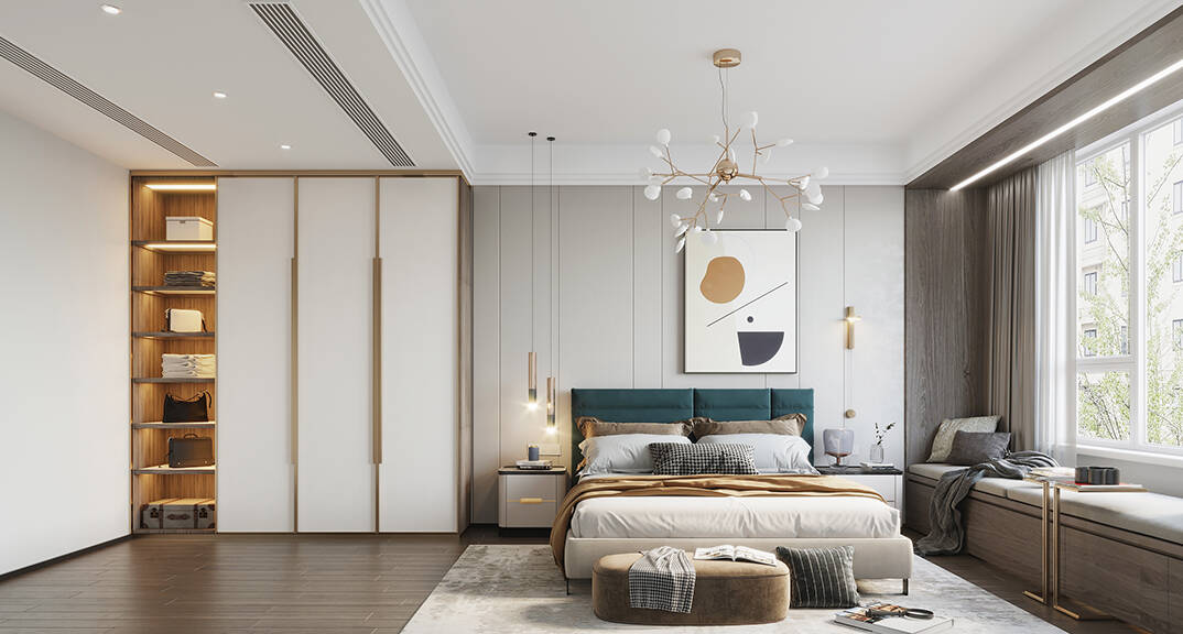 日鋼綠城·理想之城217㎡三室兩廳主臥現(xiàn)代輕奢風(fēng)格裝修案例效果圖
