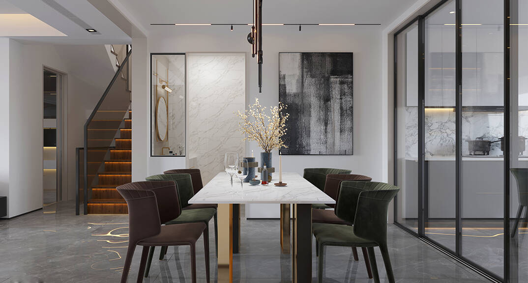 萊頓小鎮(zhèn)·海語(yǔ)墅250㎡別墅下疊一層餐廳現(xiàn)代簡(jiǎn)約風(fēng)格裝修案例效果圖