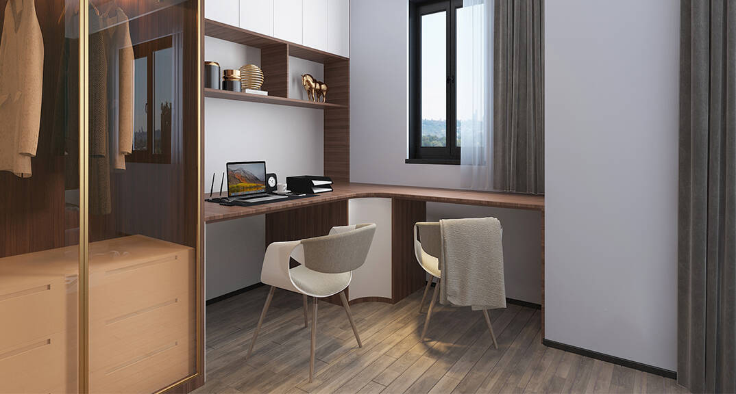 萊頓小鎮(zhèn)·海語(yǔ)墅250㎡別墅下疊二層書房現(xiàn)代簡(jiǎn)約風(fēng)格裝修案例效果圖