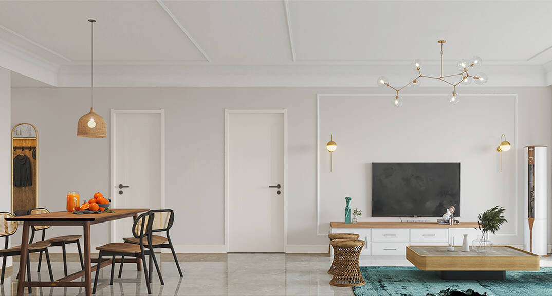 本案整體以現(xiàn)代中式風(fēng)格為主,既有現(xiàn)代風(fēng)格簡(jiǎn)約、明朗的線條,又有中國(guó)傳統(tǒng)內(nèi)涵與韻味。墻面大面積使用暖色烘托整體氛圍,融洽中式與現(xiàn)代簡(jiǎn)約兩種風(fēng)格??臻g更寬闊舒適玄關(guān)收納、玄關(guān)與干區(qū)相結(jié)合,既解放的外衛(wèi)的空間客廳電視背景是一面裝飾柜,豐富了空間,增加了收納和儲(chǔ)物,美觀又實(shí)用。