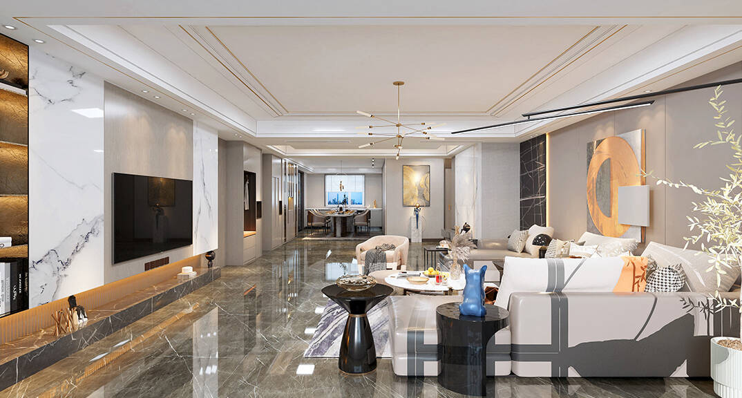 風(fēng)景水岸350㎡五室兩廳三衛(wèi)客廳現(xiàn)代輕奢風(fēng)格裝修案例效果圖