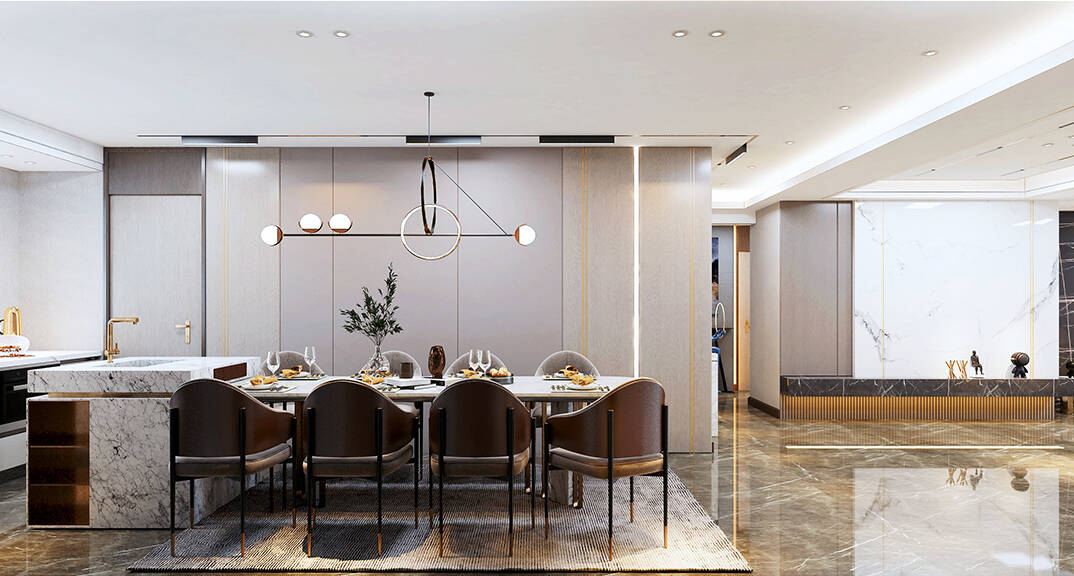風(fēng)景水岸350㎡五室兩廳三衛(wèi)餐廳現(xiàn)代輕奢風(fēng)格裝修案例效果圖