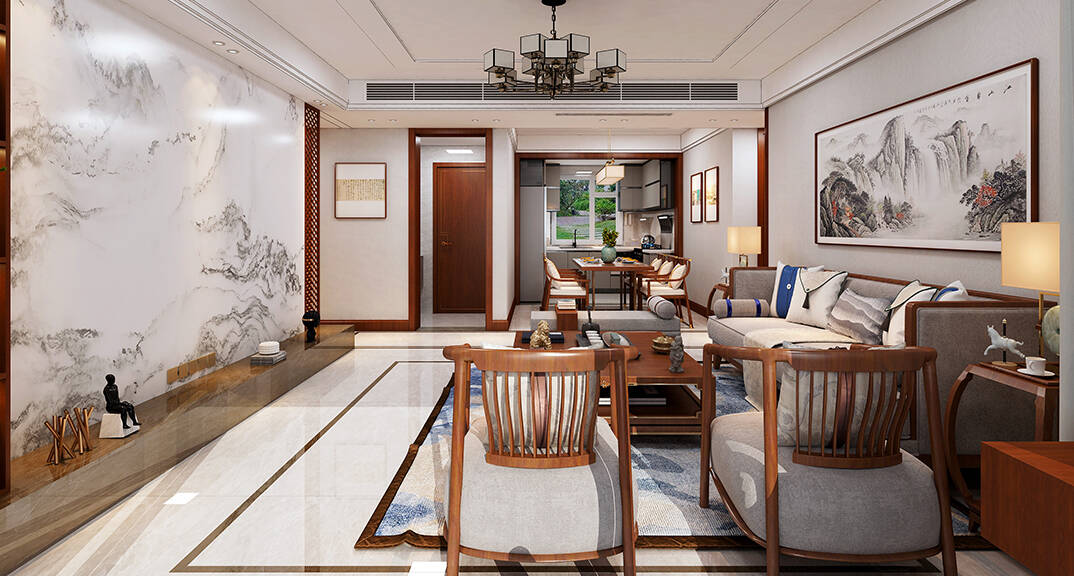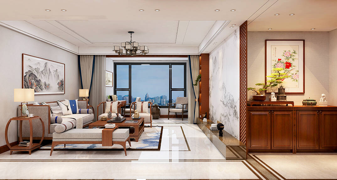 天寧君悅府145㎡三室兩廳客廳新中式風格裝修案例效果圖
