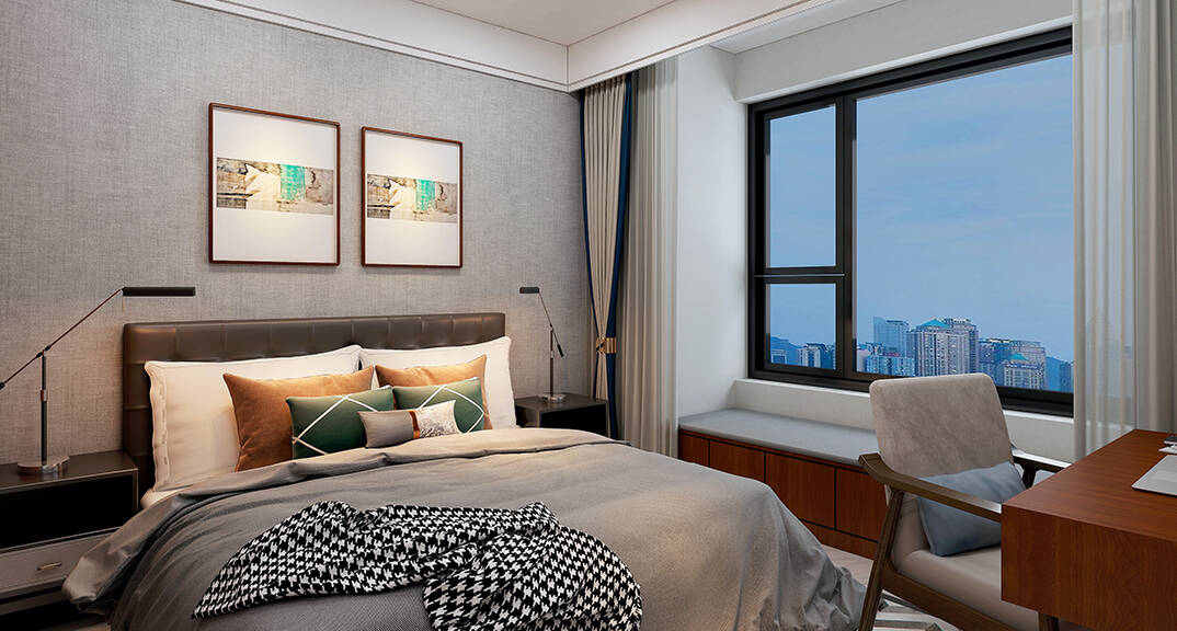 天寧君悅府145㎡三室兩廳臥室新中式風格裝修案例效果圖