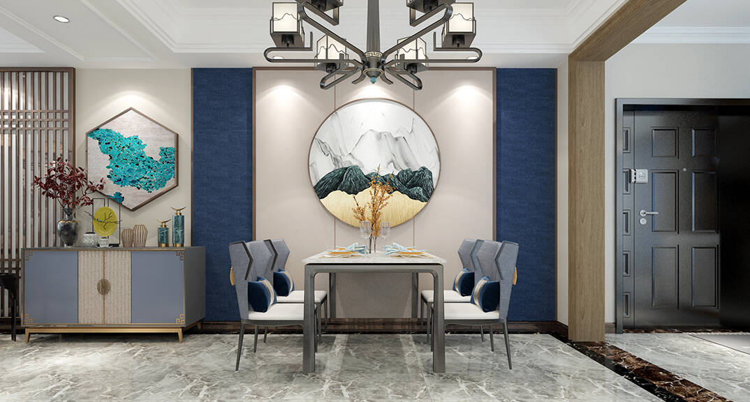 該項目位于壹號學府,進門入戶270度觀景陽臺,客廳戶型內又設雙陽臺及飄窗,整個戶型采光充足,戶主年齡在35歲左右,喜歡大氣沉穩(wěn)的風格,洽談后定下新中式風格。 女業(yè)主喜歡精致一些的小物件及墻面設計,喜歡線條,所以在項目內添加玫瑰金鋼條點綴。由于業(yè)主的年齡段,業(yè)主想家里有點色彩,不要太素,不喜歡太禪意,故在色彩上大膽選用藍色,佐以胡桃木色,精心搭配軟裝,輕裝修重裝飾,最后呈現(xiàn)效果業(yè)主很滿意。