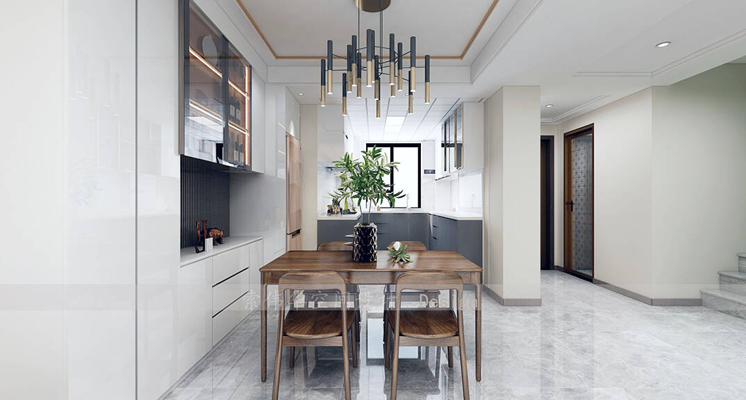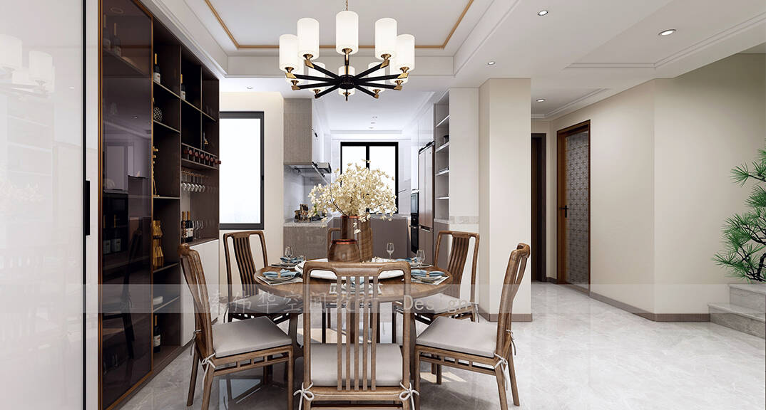 鑫江合院157㎡別墅下疊餐廳新中式風(fēng)格裝修案例效果圖