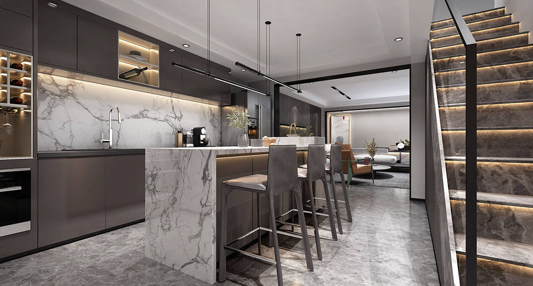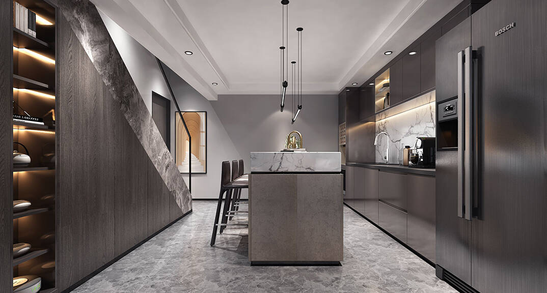 以簡潔、清晰和功能性為特征的室內(nèi)設(shè)計;它主要強調(diào)了空間的簡化和精煉,追求線條簡單、空間通透、色彩明亮、材質(zhì)自然等特點,注重形式與功能的結(jié)合。他們希望有一個時尚、現(xiàn)代的功能性空間,在整個空間的設(shè)計上用了暖灰調(diào)來與簡約的線條感來相呼應(yīng),能改造出一個通透、流暢的空間感。