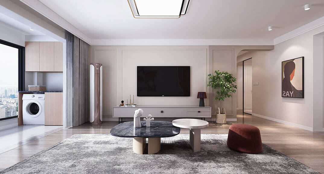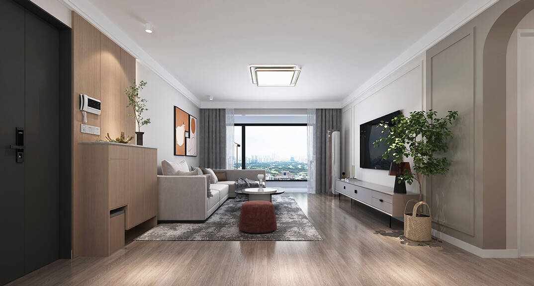 本案為三室兩廳戶型,整體采用現(xiàn)代簡(jiǎn)約風(fēng)格裝修,干練的線條,沉穩(wěn)溫馨的色調(diào)讓整個(gè)房子變得高級(jí)大氣,從視覺(jué)上提升空間的開(kāi)闊度,分色墻和弧形門洞設(shè)計(jì)自帶線條感拉伸空間層次。簡(jiǎn)潔利落的硬裝設(shè)計(jì)使空間更具現(xiàn)代感。