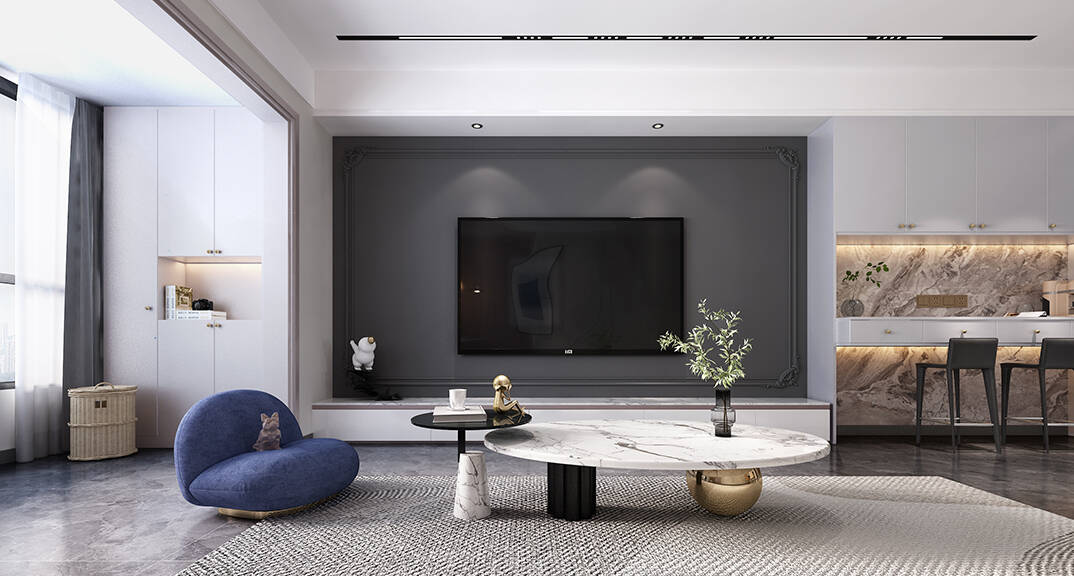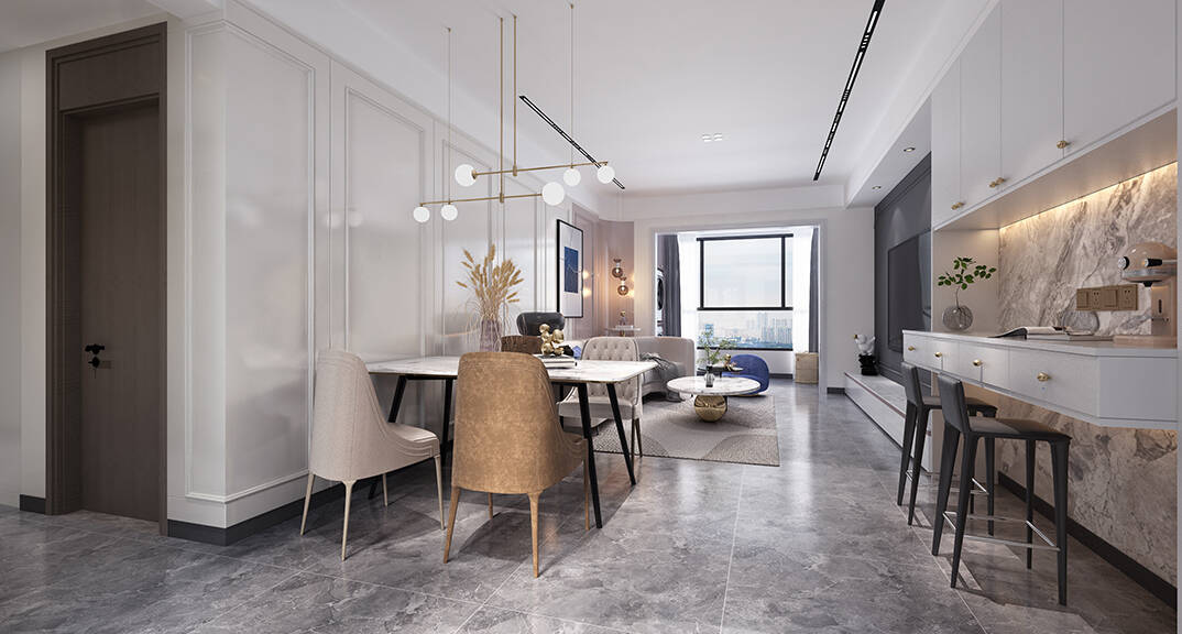 以簡潔、清晰和功能性為特征的室內(nèi)設(shè)計(jì);它主要強(qiáng)調(diào)了空間的簡化和精煉,追求線條簡單、空間通透、色彩明亮、材質(zhì)自然等特點(diǎn),注重形式與功能的結(jié)合。他們希望有一個(gè)時(shí)尚、現(xiàn)代的功能性空間,在整個(gè)空間的設(shè)計(jì)上用了暖灰調(diào)來與簡約的線條感來相呼應(yīng),能改造出一個(gè)通透、流暢的空間感。