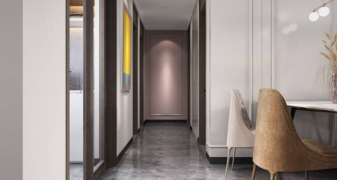 保利天匯125㎡三室一廳走廊法式輕奢風(fēng)格裝修案例效果圖
