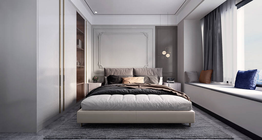 從整體的設(shè)計(jì)上來說,摒棄了傳統(tǒng)法式風(fēng)格所突出的繁復(fù)、奢華的裝飾與甜膩的色澤,而選擇淡雅、低調(diào)的設(shè)計(jì)來打造現(xiàn)代式的輕奢感。主要突出對稱的布局方式,再結(jié)合幾何線條與淺色的空間色彩,打造出一個(gè)法式輕奢主義的空間格調(diào)。