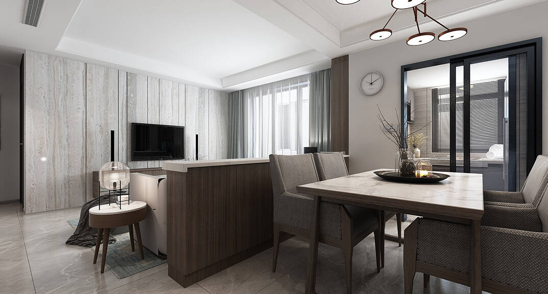 以簡潔、清晰和功能性為特征的室內(nèi)設(shè)計;它主要強調(diào)了空間的簡化和精煉,追求線條簡單、空間通透、色彩明亮、材質(zhì)自然等特點,注重形式與功能的結(jié)合。他們希望有一個時尚、現(xiàn)代的功能性空間,在整個空間的設(shè)計上用了暖灰調(diào)來與簡約的線條感來相呼應(yīng),能改造出一個通透、流暢的空間感。
