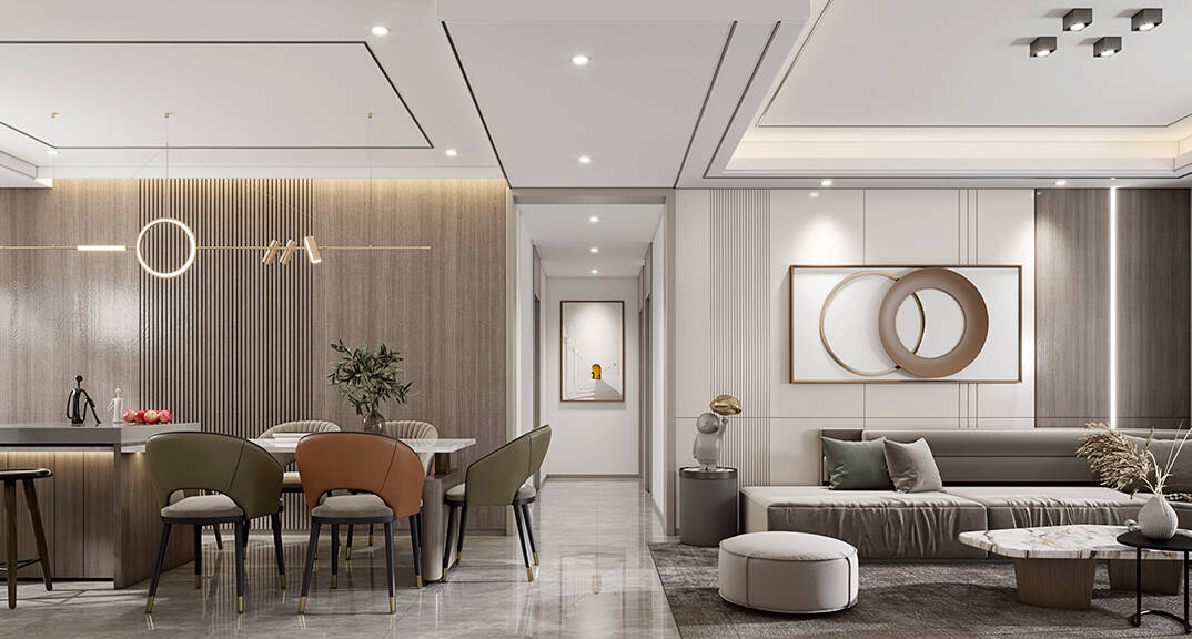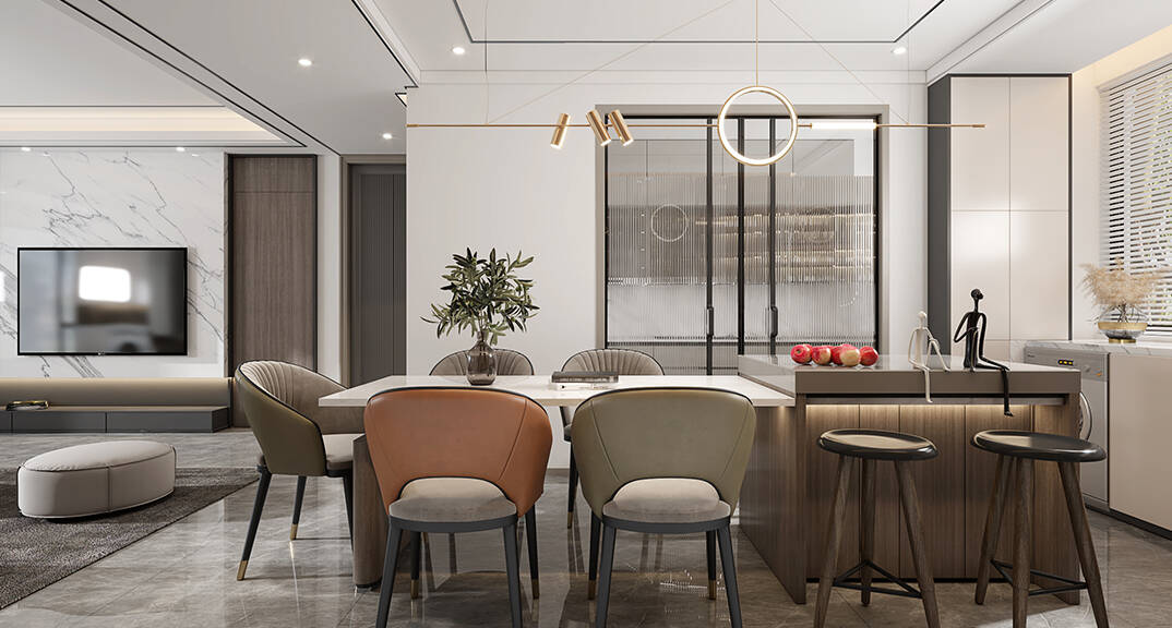 以簡潔、清晰和功能性為特征的室內(nèi)設(shè)計(jì);它主要強(qiáng)調(diào)了空間的簡化和精煉,追求線條簡單、空間通透、色彩明亮、材質(zhì)自然等特點(diǎn),注重形式與功能的結(jié)合。他們希望有一個(gè)時(shí)尚、現(xiàn)代的功能性空間,在整個(gè)空間的設(shè)計(jì)上用了暖灰調(diào)來與簡約的線條感來相呼應(yīng),能改造出一個(gè)通透、流暢的空間感。