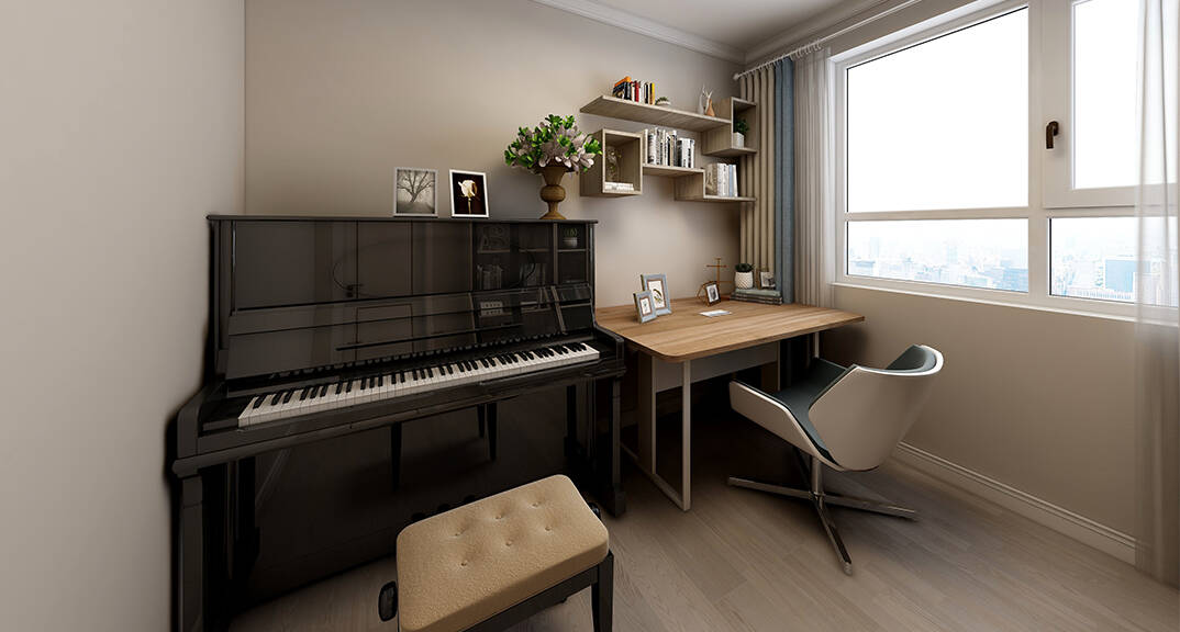 綠地望海領域100㎡三室兩廳書房中式風格裝修案例效果圖