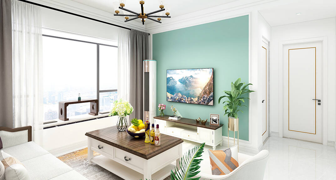 綠地望海領域100㎡三室兩廳客廳電視中式風格裝修案例效果圖