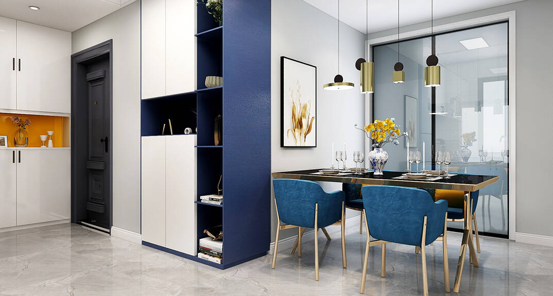 膠州機(jī)場(chǎng)公寓118㎡三室一廳餐廳現(xiàn)代風(fēng)格裝修案例效果圖