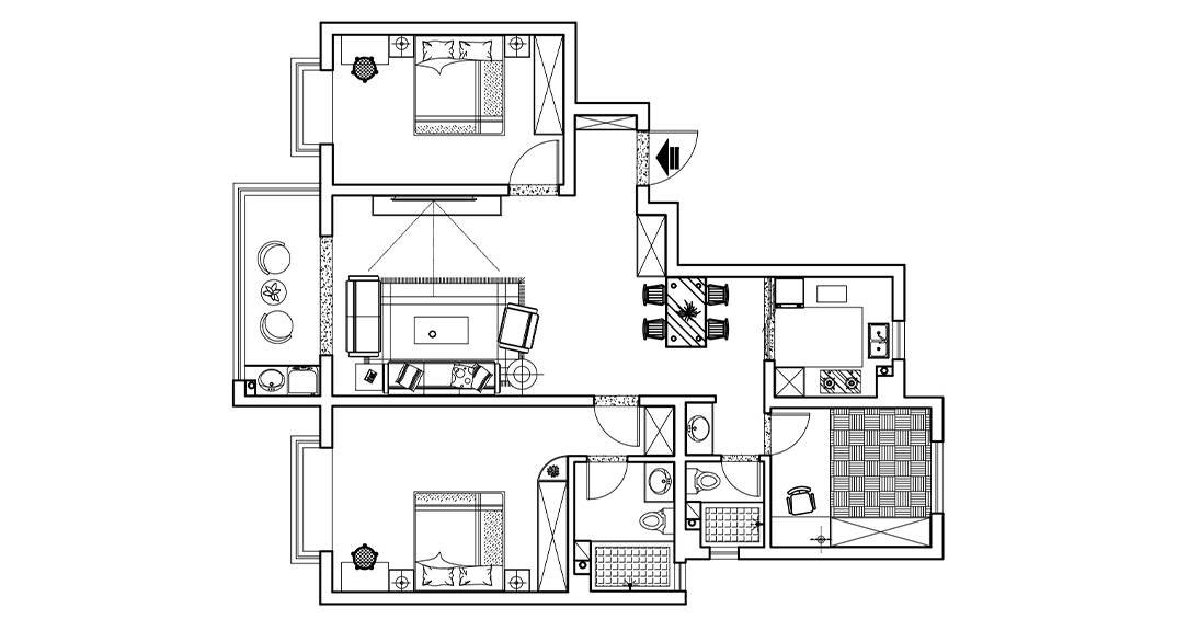 膠州機(jī)場(chǎng)公寓118㎡三室一廳現(xiàn)代風(fēng)格裝修戶型設(shè)計(jì)圖