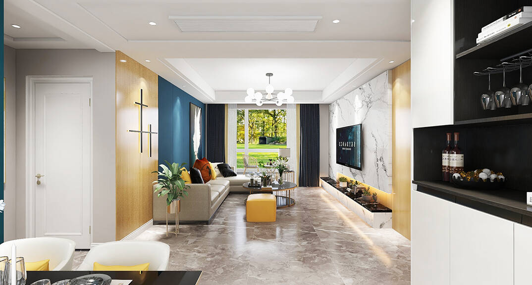 膠州機(jī)場(chǎng)公寓118㎡三室一廳客廳簡(jiǎn)約風(fēng)格裝修案例效果圖
