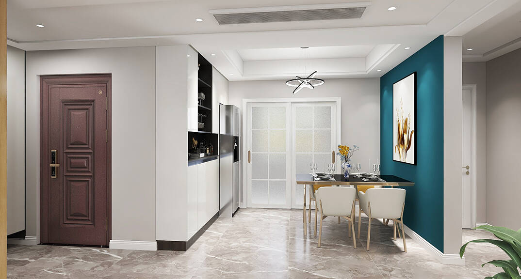 膠州機(jī)場(chǎng)公寓118㎡三室一廳餐廳簡(jiǎn)約風(fēng)格裝修案例效果圖
