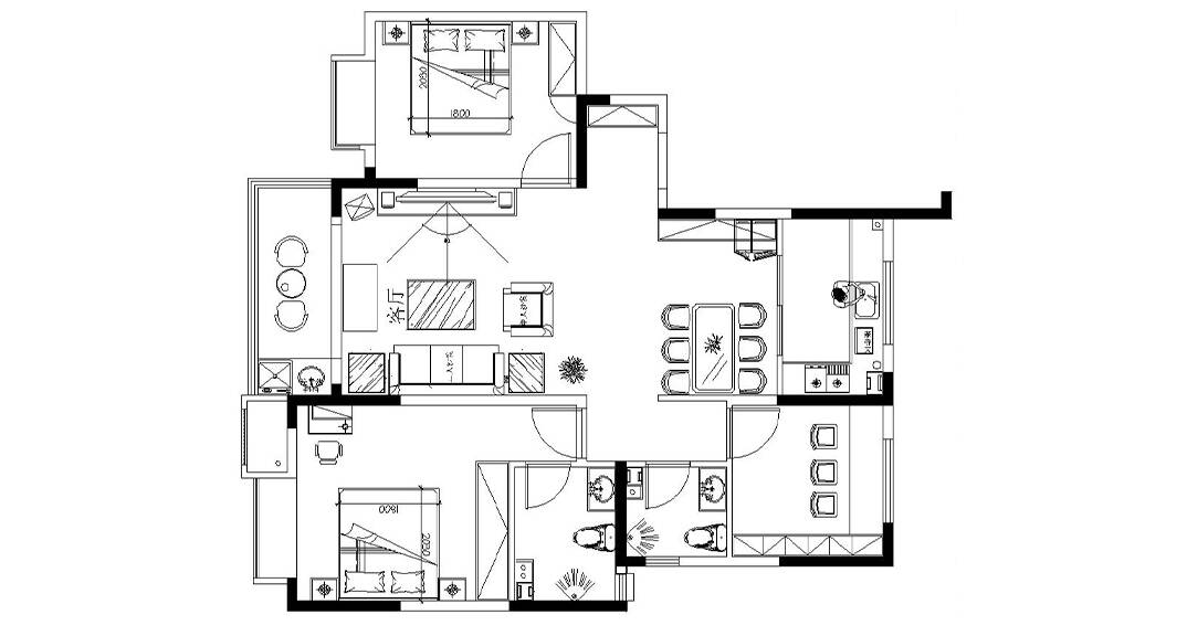 膠州機(jī)場(chǎng)公寓118㎡三室一廳簡(jiǎn)約風(fēng)格裝修戶型設(shè)計(jì)圖