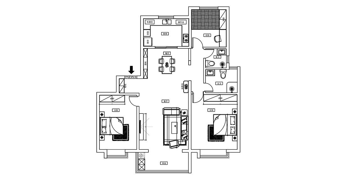 膠州機(jī)場(chǎng)公寓138㎡三室一廳二衛(wèi)現(xiàn)代簡(jiǎn)約風(fēng)格裝修戶型設(shè)計(jì)圖
