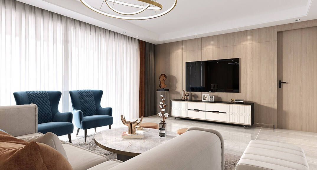 在色彩選擇上,輕奢風(fēng)格一般會(huì)選用帶有高級(jí)感的中性色,諸如駝色、象牙白、奶咖、黑色及碳灰色,來演繹一種“低調(diào)的奢華”,令空間質(zhì)感更為飽滿。