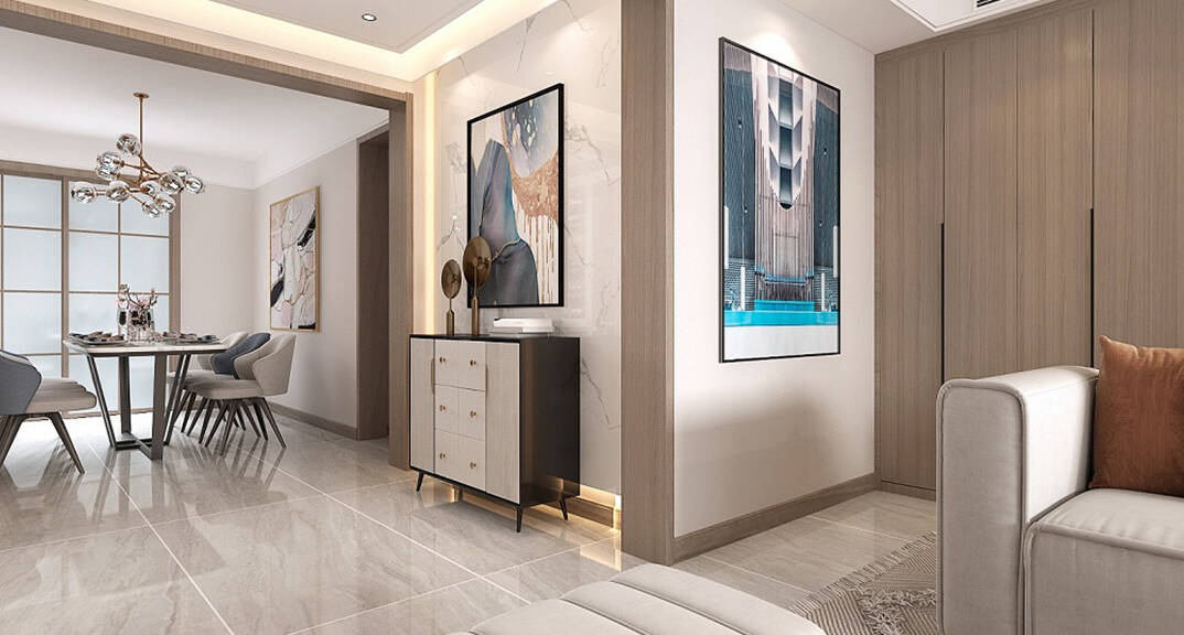 本案整體以現(xiàn)代中式風(fēng)格為主,既有現(xiàn)代風(fēng)格簡(jiǎn)約、明朗的線條,又有中國(guó)傳統(tǒng)內(nèi)涵與韻味。墻面大面積使用暖色烘托整體氛圍,融洽中式與現(xiàn)代簡(jiǎn)約兩種風(fēng)格。空間更寬闊舒適玄關(guān)收納、玄關(guān)與干區(qū)相結(jié)合,既解放的外衛(wèi)的空間客廳電視背景是一面裝飾柜,豐富了空間,增加了收納和儲(chǔ)物,美觀又實(shí)用。