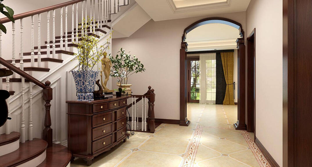 港中旅·海泉灣320㎡別墅玄關(guān)美式風(fēng)格裝修案例效果圖