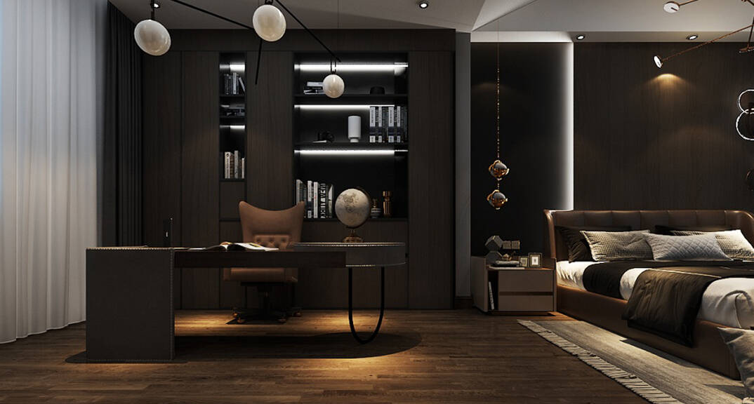 本案設(shè)計風格為意式輕奢,拒絕了濃烈的色彩,以一種簡單、純粹的設(shè)計語言,回歸生活的本質(zhì),留存給居住者更多生活想象的空間。 整體空間灰橙色、駝色、與淺暖灰色調(diào)展現(xiàn)輕奢低調(diào)的高級質(zhì)感,簡約時尚的家具又增添了一份現(xiàn)代感,重新梳理了空間功能和尺寸,客廳陽臺一體化設(shè)計,最大限度引入自然光,高級灰搭配中性色系木飾面,打造一個舒適的高品質(zhì)空間。在空間設(shè)計與色彩配搭上,精準地把控節(jié)奏,用設(shè)計表達空間的包容性,更多的是通過人性化思考,創(chuàng)造一個功能性完整的舒適生活空間。大塊的木飾面、金屬元素和燈 光的碰撞搭配,凸顯出強大張力,共同打造出意式輕奢腔調(diào)十足的時尚與質(zhì)感。