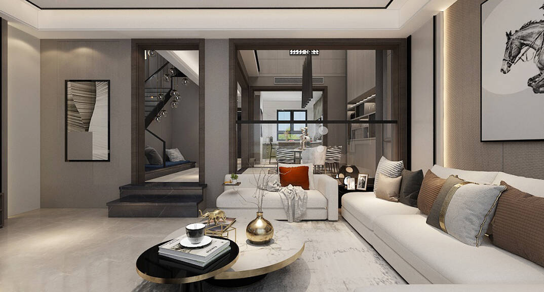 嶺海迪亞灣210平聯(lián)排別墅客廳現(xiàn)代風格裝修效果圖
